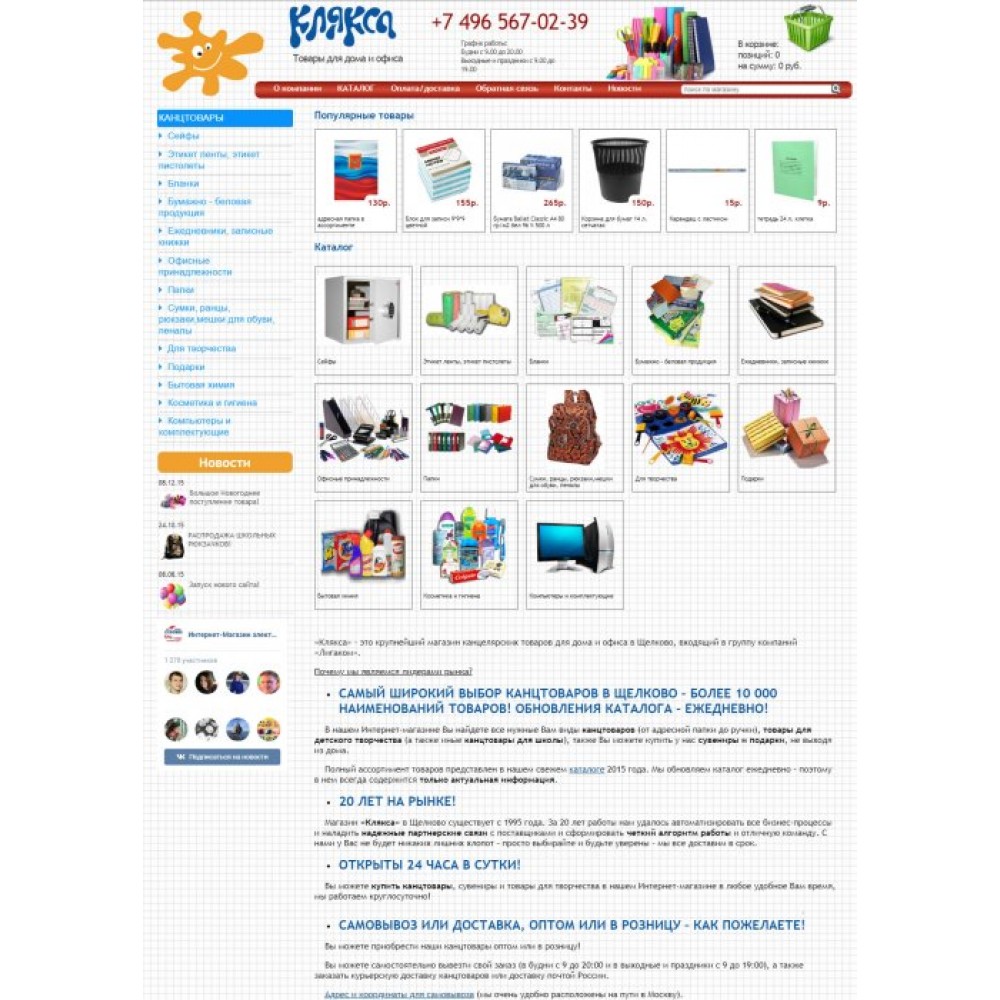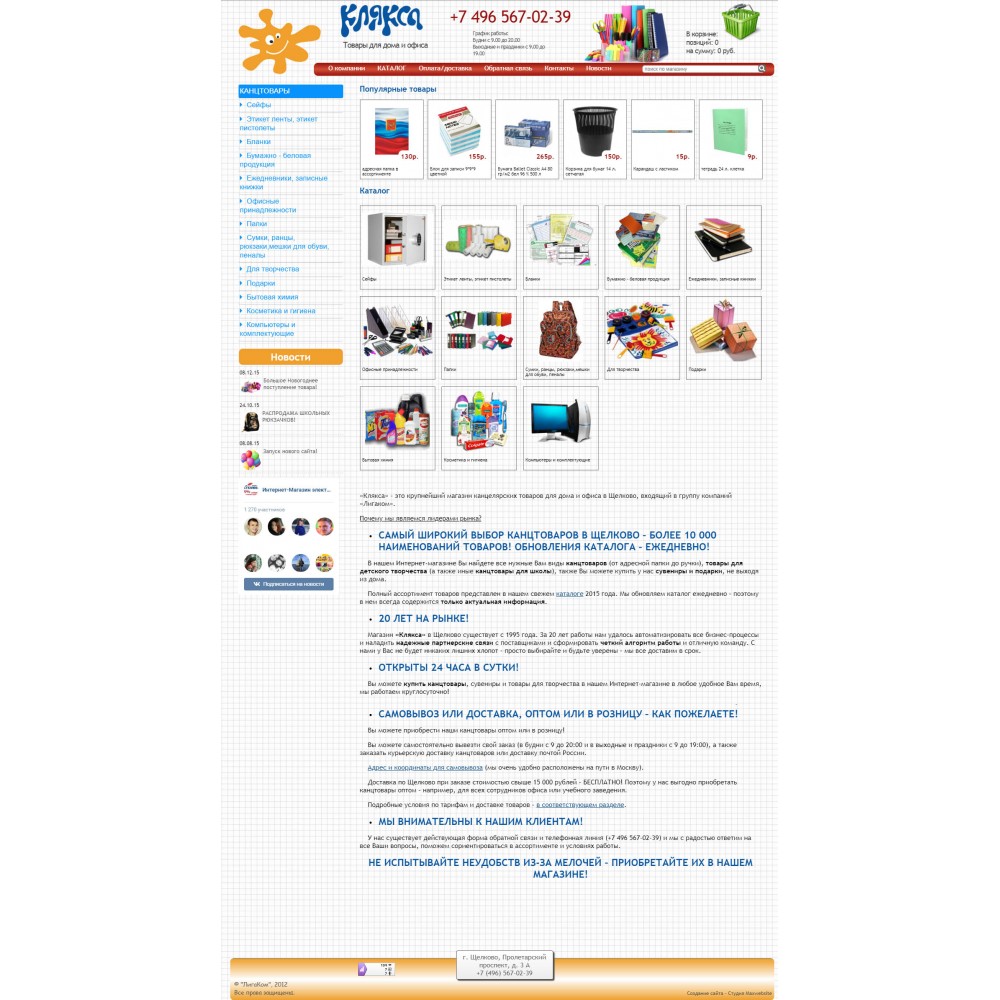 Интернет-магазин канцелярских товаров Клякса от веб-студии Максвебсайт г. Кушва