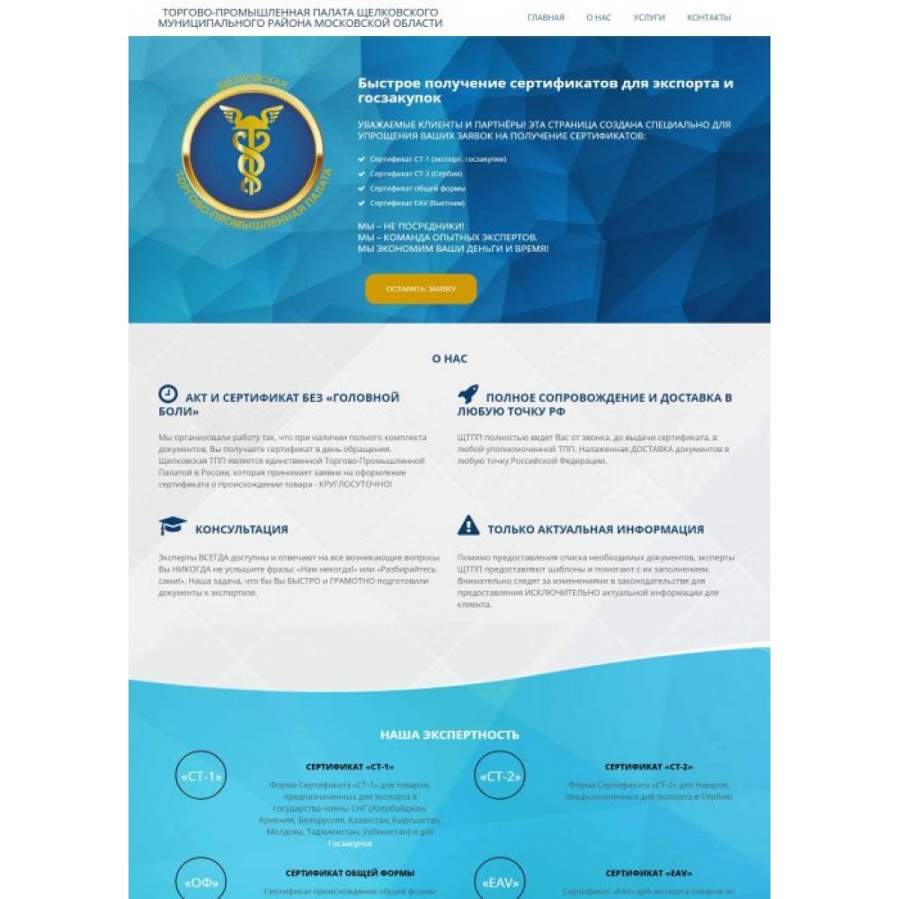 Сайт-лендинг Торгово-промышленной палаты от веб-студии Максвебсайт г. Кушва
